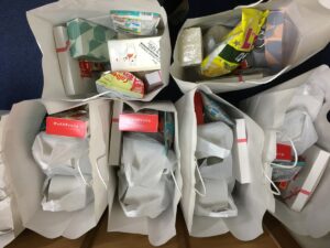 今年は、お菓子や生活用品の寄付があり、お米以外に多くの物資をお渡しすることができました。